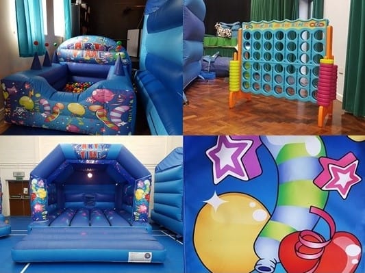 This Celebration deal is for indoors hire only. The bouncy castle is a large 12.5ft x 15ft, great if your have lots of guests coming round. The ball pool has the floating ball which the kids love, both the castle and the pool have balloon artwork on making it great for a girls or boys party. Then there's the giant connect four, which adults and children can both play on.