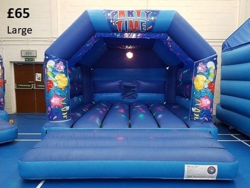 Select one of the bouncy castle themes below, choose the size, then check availably and postcode cost. Select the music and lights (£20) in the 'extras' section on the booking form, or just the disco ball (£10) if you don't require the music system. You can also add other things to your order here such as games and ball pools