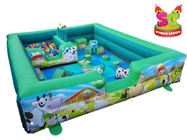 What's included? There are 17 pieces of soft play shapes, 2 single rockers, a ride on cow and of course the ball pool.